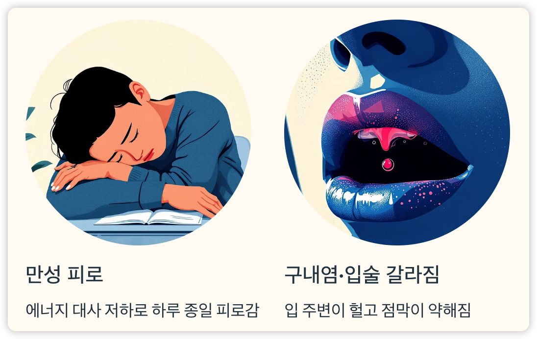 - 에너지 대사가 제대로 이뤄지지 않아 하루 종일 피로
