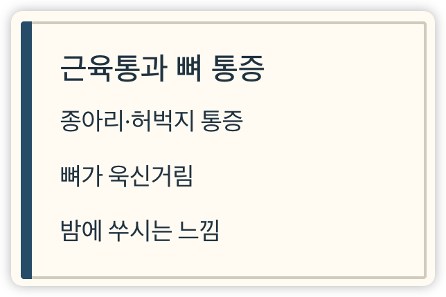 - 뼈가 욱신거리거나 밤에 쑤시는 느낌
