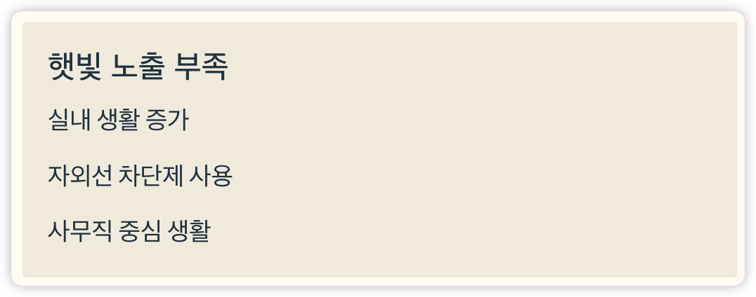- 평소 햇빛을 잘 안 쬔다