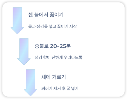 ✅ 생강:물 비율 1:10, 25분간 끓이기