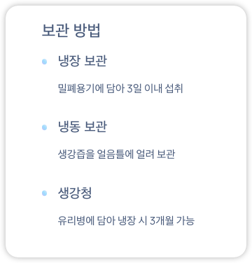 - 냉장 보관: 밀폐용기에 담아 3일 이내 섭취