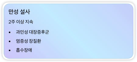 ⚠️ 만성 설사는 단순 장염이 아닌 내과적 질환의 초기 신호일 수 있습니다.