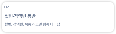 ⚠️ 이런 증상이 있으면 염증성 장질환, 세균성 감염, 식중독 가능성이 있습니다.