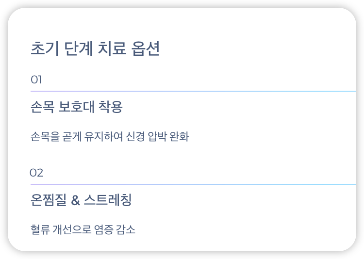 💡 증상이 가볍다면 손목 중립 자세 유지와 스트레칭만으로도 충분히 개선됩니다.