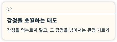 💡 감정을 억누르지 말고, 그 감정을 초월하는 태도를 길러야 합니다.