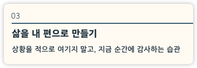 → “이 경험은 나를 단단하게 만들 거야.” - 예기치 않은 사건에도