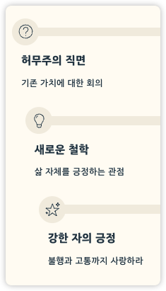 그러나 그는 거기서 멈추지 않고, 삶 자체를 긍정하는 철학을 제시합니다.