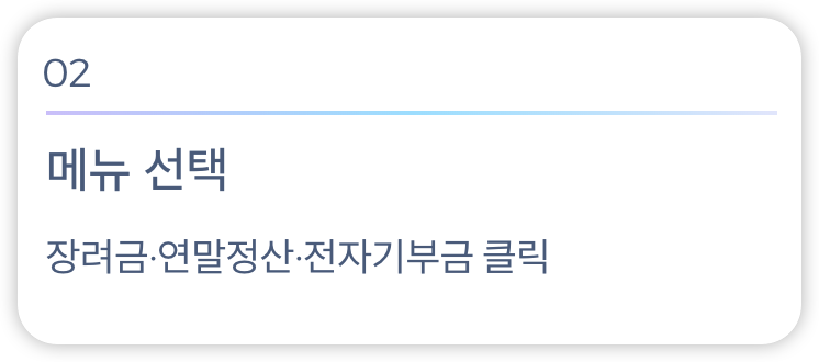 - 홈택스 로그인 → [장려금·연말정산·전자기부금] 메뉴 클릭
