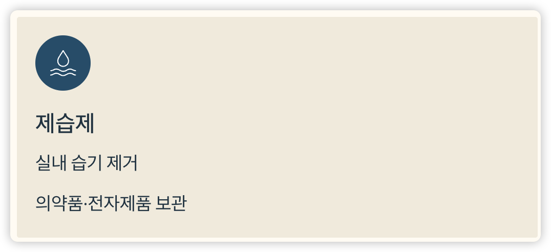 - 공기 중의 수분을 빠르게 흡수해 곰팡이, 부패 방지