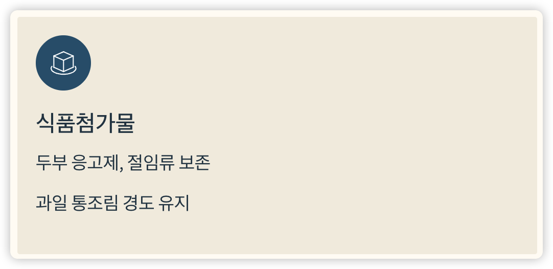 - 주로 두부 제조, 절임류, 과일 통조림 등에 쓰임