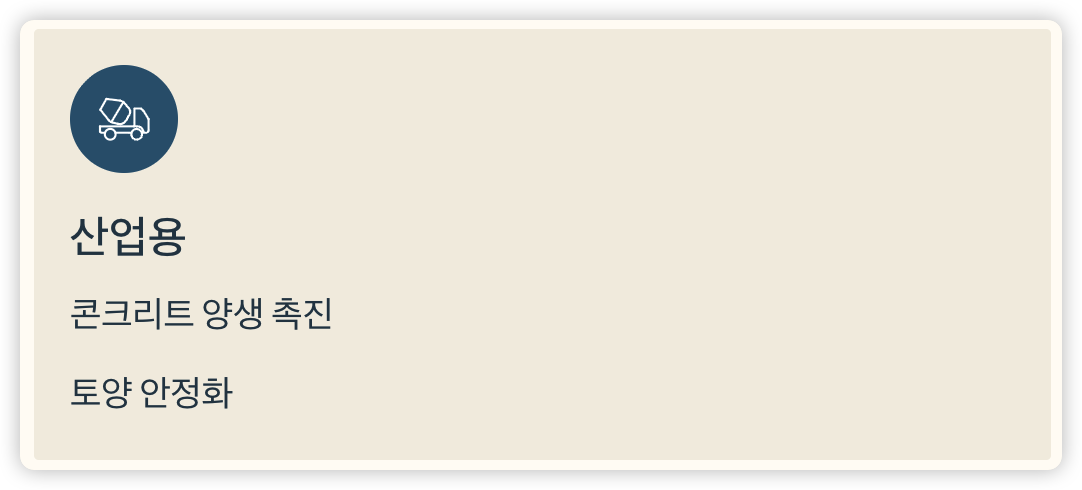 - 도로 포장 시 굳는 시간 단축 및 강도 향상
