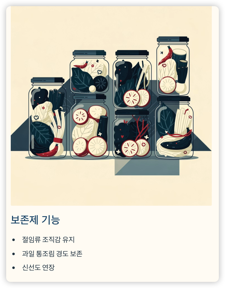 과일 통조림, 절임류, 두부 응고제 등 다양한 용도에서 사용 허가됨
