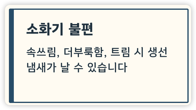 - 위장 불편감 (속쓰림, 트림 시 생선 냄새)