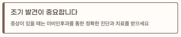 가볍게 넘기지 말고 증상이 있을 때는 이비인후과를 통한 정확한 진단과 치료를 받는 것이 가장 중요합니다.