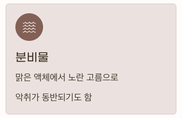 - 초기에는 맑은 액체 → 감염 심화 시 노란 고름, 악취 동반
