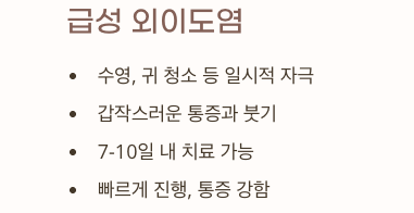 | 구분 | 급성 외이도 | 염만성 외이도염 |