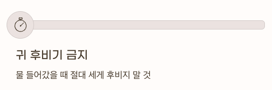 - 귀에 물 들어갔을 때 절대 세게 후비지 말 것