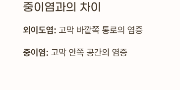 | 발생 원인 | 수영, 귀 청소 등 일시적 자극 | 반복 감염, 아토피, 습진 등 |