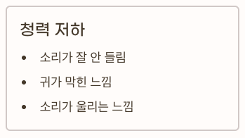 - 분비물과 부종으로 인해 소리가 잘 안 들림