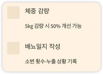 ✅ 배뇨일지 작성 – 소변 횟수, 누출 상황을 기록하면 원인 파악에 도움이 됩니다.