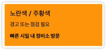 - 색상 확인 – 빨강은 즉시 정지, 노랑은 빠른 점검