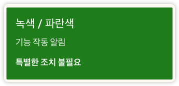 | 녹색/파란색 | 기능 작동 알림 | 특별한 조치 필요 없음 |