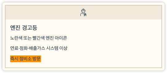 - 대처: 점등 시 가능한 한 빨리 정비소 방문