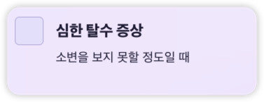 | 탈수 증상 | 입 마름, 소변량 감소, 어지러움 등 |