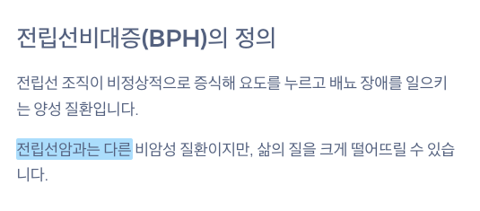 전립선비대증(Benign Prostatic Hyperplasia, BPH)은 전립선 조직이 비정상적으로 증식하여 요도를 누르고, 배뇨에 다양한 문제를 일으키는 질환입니다. 전립선암과는 다르며, 비암성(양성) 질환이지만, 삶의 질을 심각하게 저하시킬 수 있습니다.