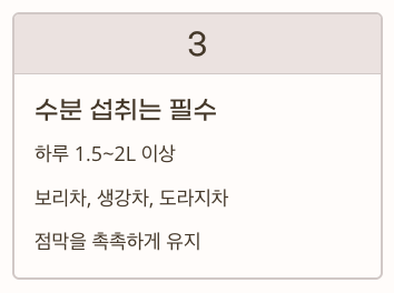 💧 하루 1.5~2L 이상 수분 섭취 권장