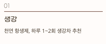 - 따뜻한 보리차, 생강차, 도라지차 등 추천