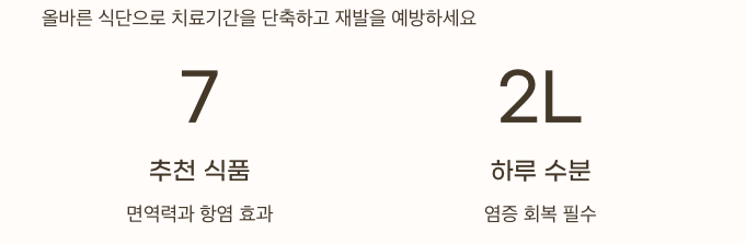 면역력과 염증 조절이 핵심이며, 올바른 식단은 치료기간을 단축하고 재발을 줄일 수 있습니다.