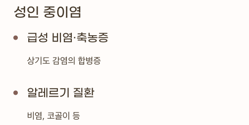 - 급성 비염 또는 축농증 합병증
