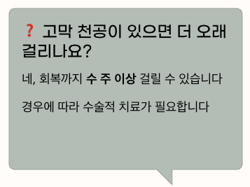 ❓ 고막에 구멍이 나면 더 오래 걸리나요?