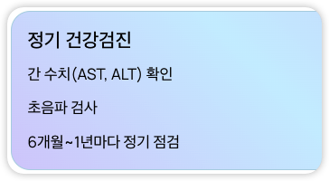 간 수치(AST, ALT)와 초음파 검사를 6개월~1년에 한 번씩 확인하면