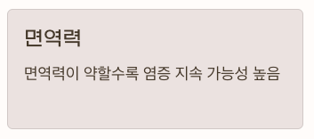 | 개인 면역력 | 면역력이 약할수록 염증 지속 가능성 ↑ |