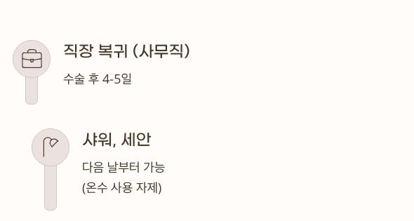 | 직장 복귀 (사무직) | 수술 후 4~5일 후 가능 |