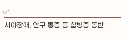 - 시야장애, 안구 통증 등 합병증 동반