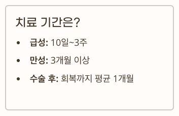 - 수술 후: 회복까지 평균 1개월