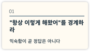 - “항상 이렇게 해왔어”라는 생각을 경계할 것