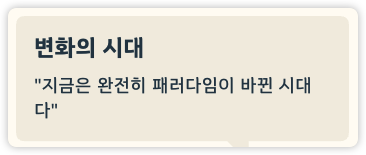 👉 이런 상황에서 패러다임 전환은 피할 수 없는 필연적인 과정입니다.