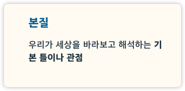 👉 즉, 우리가 세상을 바라보고 해석하는 기본 틀이나 관점을 말합니다.