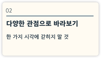 - 다양한 관점에서 문제를 바라볼 것