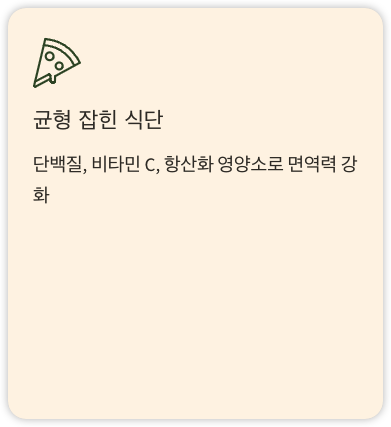 단백질, 비타민 C, 항산화 영양소는 면역력 강화에 도움 - 충분한 수면과 스트레스 관리: