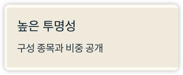 | 정보 투명성 | 높음 | 낮음 | 개별 종목 정보만 제공 |