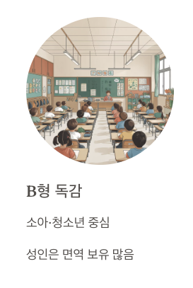 - A형은 전 연령층에서 광범위하게 감염 가능