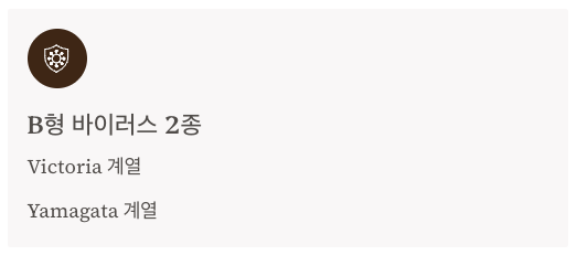 - B형 독감 바이러스 2종(Victoria 계열, Yamagata 계열)