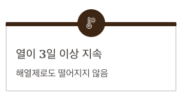 - 열이 3일 이상 지속되며 떨어지지 않음