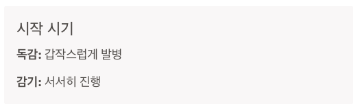 - 감기는 3~5일이면 회복되지만, 독감은 일주일 이상 지속될 수 있음