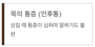 - 목의 통증(인후통)